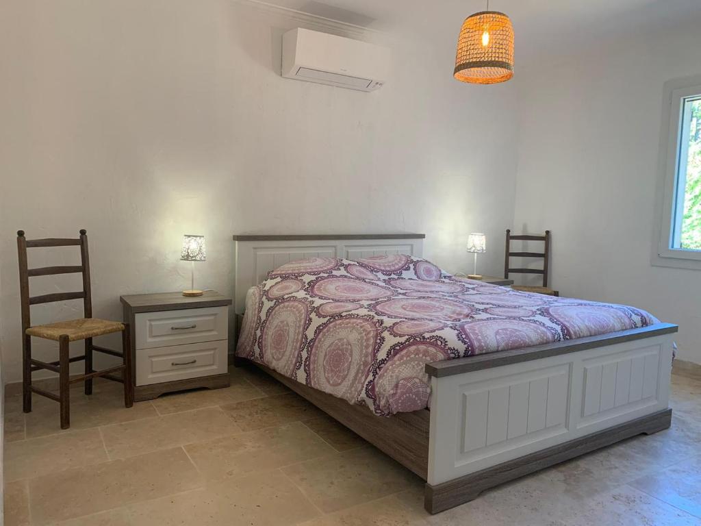 - Chambre 2 : également dotée d’un grand lit double.