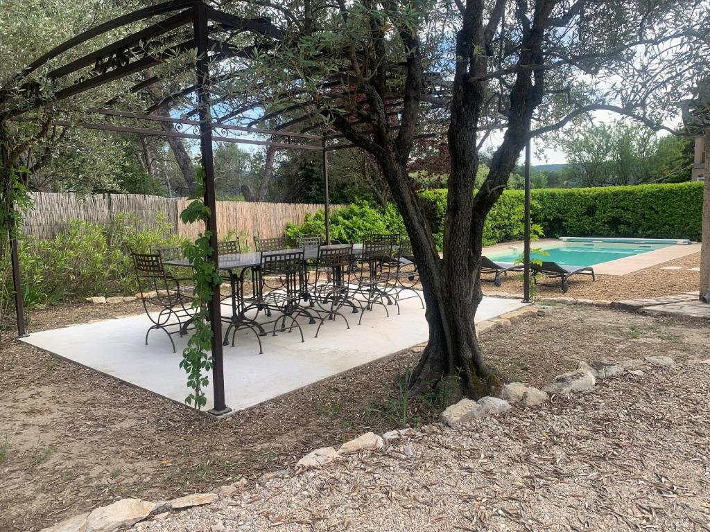 Terrasse avec vue imprenable sur la piscine : Profitez d’un espace extérieur élégant offrant une vue magnifique sur notre piscine privée.